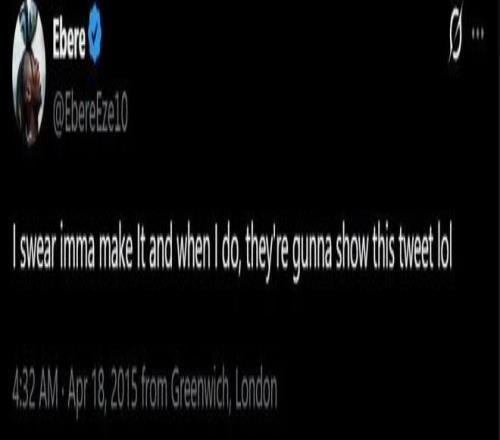 但可能大家都没留意的是,埃泽在13岁时曾被阿森纳青训学院放弃,当时他还在社交媒体发文:“我一定会成功,当我成功的时候,他们会把这条社媒发出来看的。”