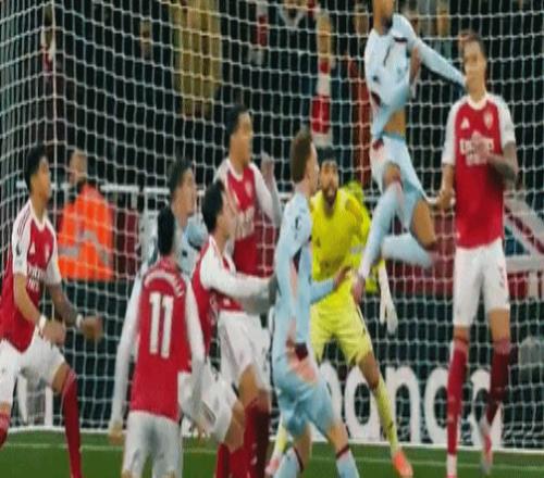 第21分钟,延森角球传中,沙德中路甩头攻门,拉亚单掌扑救,皮球击中横梁弹出,阿森纳逃过一劫。