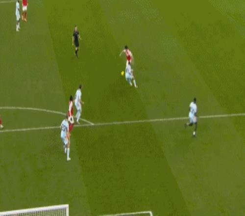 第11分钟,阿森纳踢出默契配合,马杜埃凯右路直传,本-怀特插上传中,梅里诺头槌破门,连续两轮联赛进球,1-0!
