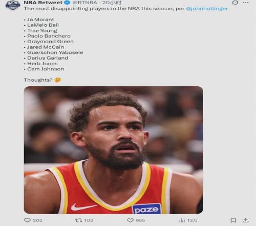 NBA名记John Hollinger评选本赛季最失意的球员,莫兰特高居第一,三球排名第二,特雷杨第三。3-9名分别是:班凯罗、追梦、麦凯恩、亚布塞莱、加兰、赫伯特-琼斯、卡梅伦-约翰逊。前三个最有代表性,也是最可能离队的球员。