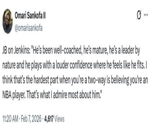 这也是活塞队本赛季一路逆袭成为东部第一大黑马的优势之一,其中双向合同奇兵詹金斯是活塞替补席蜕变的关键原因。