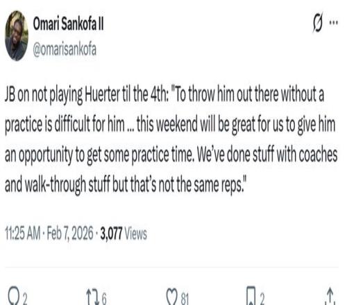 比克斯塔夫赛后解释了为何仅让其出战8分钟:“让他在没有与球队进行过任何合练的情况下出战很难,这个周末球队将给他机会参与训练找状态。”